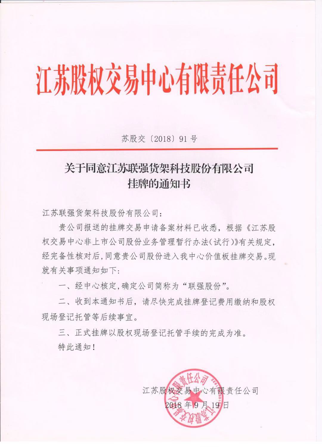 2018年公司在江蘇省股權(quán)交易中心掛牌,公司簡稱:聯(lián)強(qiáng)股份,企業(yè)代碼為:680045